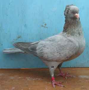 Rezessiv rote Platin: Auf Kreuzungen in den 80er Jahren zurückgehend, fallen gelegentlich rezessiv Rote aus Schwarzen. Durch die relativ geringe Zuchtbasis der einzelnen Farbenschläge bedingt kommt es zu häufigen Kreuzungen zwischen den einzelnen Farbenschlägen, und damit auch zwischen Platin und Schwarz. Durch diese Kreuzungen ist offenbar der Erbfaktor für rezessiv Rot auch in die Platinfarbenen gelangt, denn in den Jahren 2000 und 2001 fielen aus platinfarbenen Zuchtpaaren mehrere rezessiv rote Platin. Diese sind anfangs einfarbig Rot, wenn auch nicht besonders intensiv, nach der Mauser wird vor allem das Flügelschild platingrau durchsetzt. 0,1 Rezessiv rote Platin Die Erzüchtung der farbigen Pommerschen Schaukappen ist im Buch „Tauben. Züchten mit System" nachzulesen und wurde mit einer kurzen Fotomontage auch in einem SV-Journal abgedruckt. |