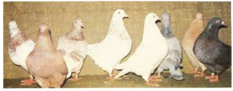 eine Gruppe mit unterschiedlichen Färbungen wurde im ‚World Pigeon