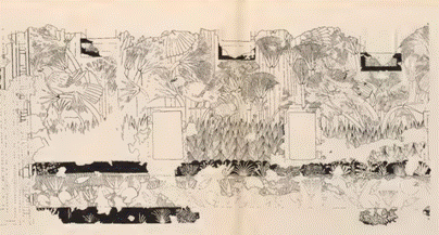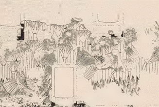 Detail von Plate II: „Green Room,“ East-wall. Gezeichnet von Nina de