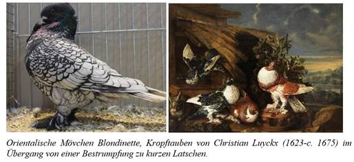 Bestrumpfung bei Orientalischen Mövchen und, bei blaugehämmerten und