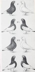 Fig. 1: Inheritance of magpies that do not breed true (Klein 1941)