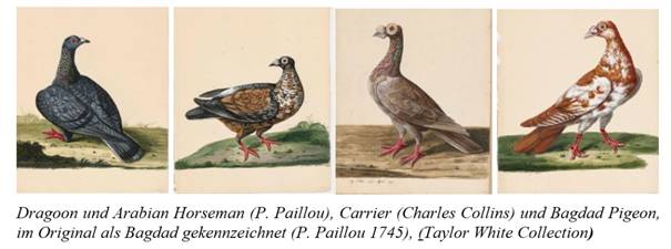 Botentauben aus dem Orient. Diese wurden als ‚Carrier‘ des