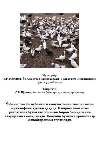 Gulbodom-Verband der Taubenzüchter. Rezensent: S.B. Boriev, Doktor