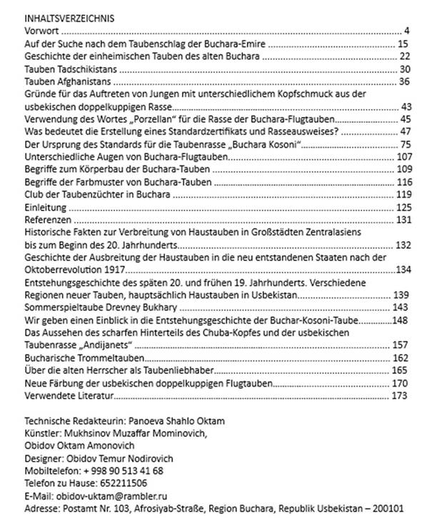 Schriften usbekischer Taubenzüchter bekannt. Bisher in russischer
