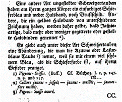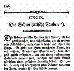 Schweizerische Tauben. Quelle: Übersetzung aus Buffon 1772 ins