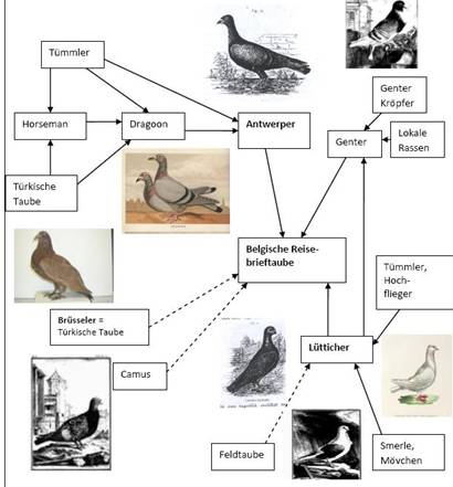 unterschiedlichen Taubenrassen im 19. Jahrhundert zurückgehen und