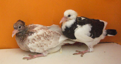 und roter Nackenflecktümmler mit aschfahler Pommerschen Schaukappe und