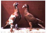 Beispiel findet er in der Literatur weinrote Kropftauben, bei denen