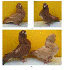 hens on a blue color base. Female pigeons corresponded to the wild
