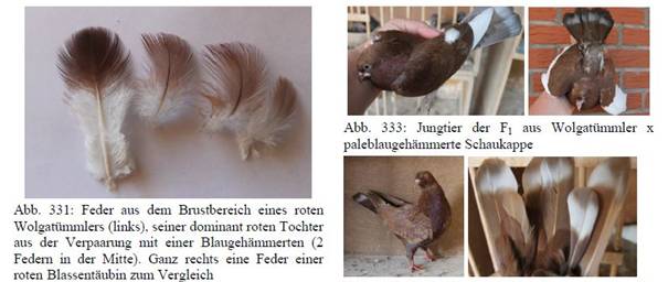 Kreuzungen eines Wolgatümmlers mit einer blaugehämmerten Täubin