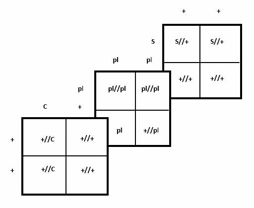 platinum (+//pl), mixed checkered (C//+) and without spread (+//+).